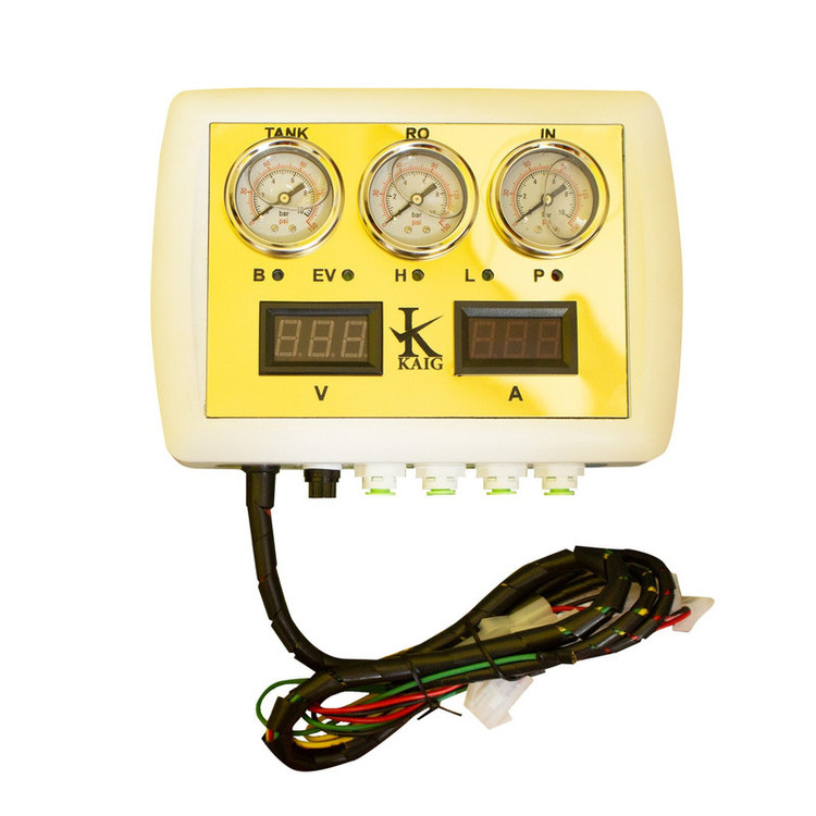 فول تستر گیجدار ابزاری کامل جهت تست و عیب یابی انواع دستگاه تصفیه آب خانگی و نیمه صنعتی میباشد، این دستگاه قابلیت سنجش ولتاژ ترانس و جریان مصرفی پمپ و شیربرقی را داشته و میتواند وضعیت سوئیچهای دستگاه را در پنل نشان دهد، علاوه بر امکانات مذکور بوستر تعبیه شده میتواند ترانسهای ضعیف را تقویت و اثر آن را در فشار پمپ نشان دهد. فول تستر علاوه بر کنترل وضعیت الکتریکی دستگاه 3 گیج مجزا جهت اندازه گیری فشار نقاط حساس دارد که میتواند در عیب یابی دقیق و سریع موثر باشد. این تستر به برق و باطری خارجی نیاز ندارد و با برق خود دستگاه تصفیه آب تغذیه میگردد.